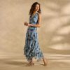 Elegance defines this stunning top with intricate embroidery and eyelet details. Elastic at the scalloped hem and ruffles at the shoulders. Square neckline. Cotton/linen. Hand wash. Imported.