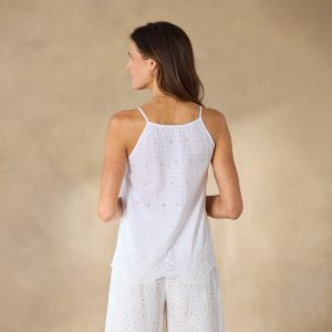 Textural windowpane dobby adds beauty and life to our easy A-line tank with eyelet embroidery. ladder lace insets and eyelet scalloped hem. Cotton. Machine wash. Imported. Exclusive. Sizes XS (0–2). S (4–6). M (8–10). L (12–14). XL (16–18). XXL (20–22). Approx. 24l.