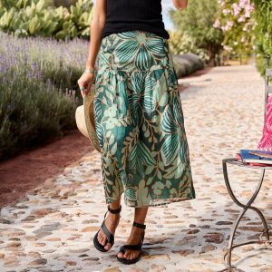 Make a statement in our dramatic. full-length skirt in an artistic ikat print with a broomstick twist. High waist. back zip. back center elastic for comfort. two pockets. Lined. Cotton/spandex. Machine wash. Imported. Exclusive. Sizes XS (0 to 2). S (4 to 6). M (8 to 10). L (12 to 14). XL (16 to 18). XXL (20 to 22). Approx. 38L.