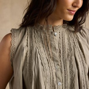 Equal parts effortless and feminine. our Malia Eyelet Top features a swingy pleated silhouette with real shell buttons. delicate lace details at the collar and armholes and a scalloped eyelet hem. Cotton. Machine wash. Imported. Sizes XS (0–2). S (4–6). M (8–10). L (12–14). XL (16–18). XXL (20–22). Approx. 23l.